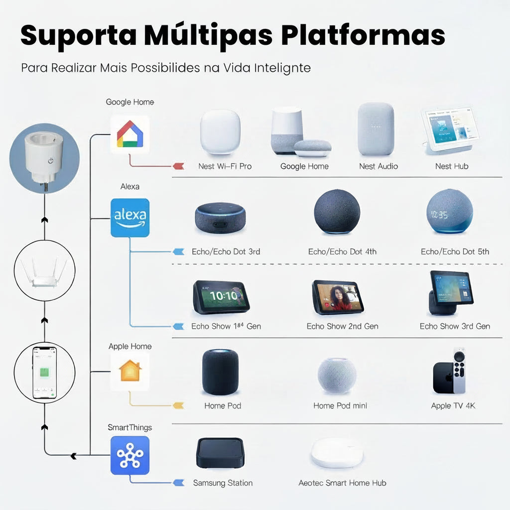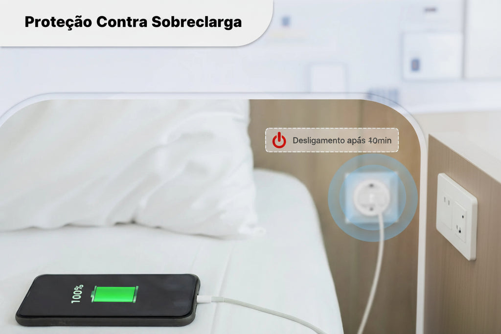 Automatize qualquer aparelho conectado à tomada com um plug inteligente que permite controle remoto via aplicativo ou comando de voz. O sistema de programação permite criar rotinas personalizadas para ligar e desligar dispositivos em horários específicos, enquanto o monitoramento de consumo energético ajuda a identificar oportunidades de economia.